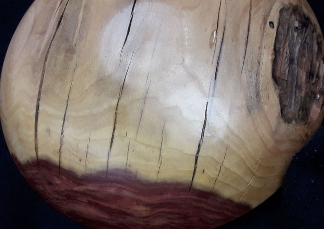 In diesem wunderbar gefärbtem Zwetschgen-Holz war der "Wurm" drin. Man sieht die Spuren an manchen Stellen noch sehr deutlich - genau das macht ein "Feines-Unikat" von mir aus. Das Zusammenspiel von "Natur" und Mensch in einem Objekt vereinigt. Mit Tungöl eingelassen, mit Wachs behandelt und poliert. Im Laufe der Zeit werden die kräftigen Töne dunkler werden.